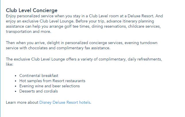 Disney pitches the club level concierge access as 'personalized service' and assistance on topics a Concierge normally helps with. Disney plays it out to be just like a duck.. tries to make it quack like a duck... but it's still a turkey.