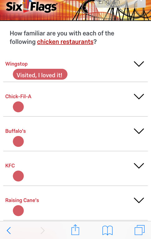 Latest survey focused on nice steakhouses, and wanted a lot of opinions on different fast food places including those at Busch plus Krusty at Universal