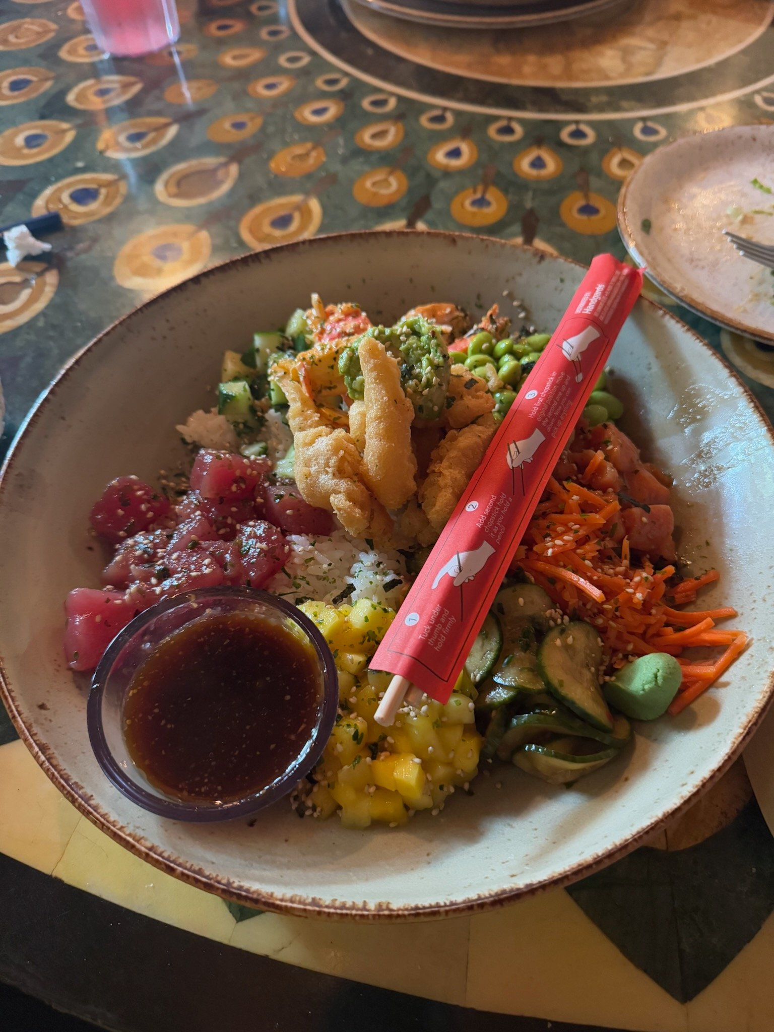 Den and Brin both had a tuna/salmon poke bowl. They could have split it!! (Note to self)
