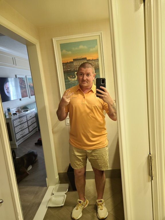 Showered up and ready to go! I sent a text to @amjt660 to show off my new golf shirt