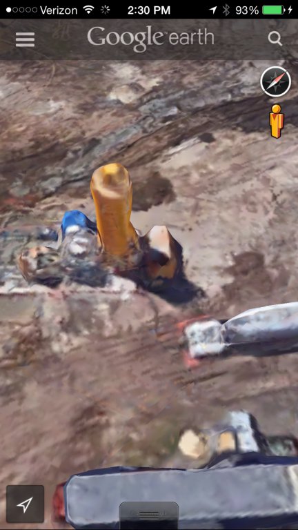 Ah, ok, this is what I am seeing, this from about a year ago. The yellow thing is, I believe, a concrete batch mixer, you can see it in the picture below. The other thing may just be an artifact of the way they do the 3D maps.