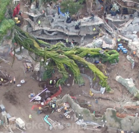 model certainly shows trees in front of themAgree. If they were planning to cover those steel beams & columns in character plaster (i.e., the giant 'vines' under the central floating mountains), as suggested earlier, why would they bother painting it go-away green? It appears they may be planning on obscuring those beams versus plastering them.