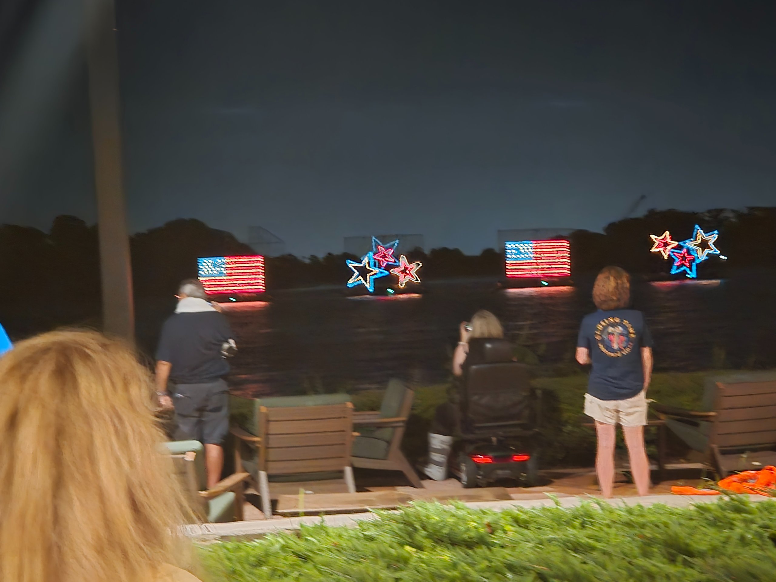 There was a guy in pajamas and no top who came out to see the water pageant lol