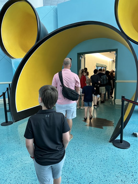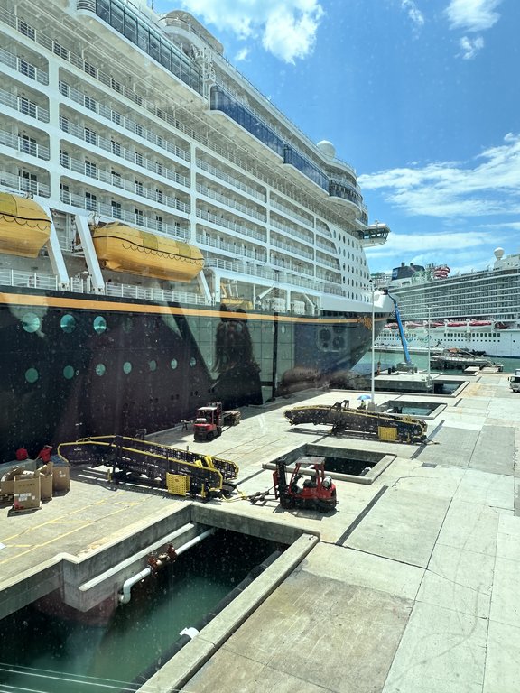 I mentioned this in a comment above, but I've only cruised one other time (Carnival) and that was out of New Orleans. When I tell you the boarding process was horrific, I am not exaggerating. We were hoping this would be a better experience for us. We were in Boarding Group 8 - 11:45 to 12:00 so we were prepared to drop our bags and wait a bit. Once we arrived, the baggage porters took our luggage and pointed us in the right direction. We walked up and Disney had different signs up with the different boarding times which started with 11:00 - 11:15 and so on. We found our sign and got in line there. Shortly after a castmember walked up to us, picked us out of the line and told us she was moving us to the 11:00 boarding time sign. Literally a minute later we were walking into the Port and checking in. It was all so easy. He checked our passports and gave Cam his kids club band and off we went through security and then found our way to the waiting area and waited for our boarding group to be called. Sooooo smooth!! Everything was off to a great start!!!