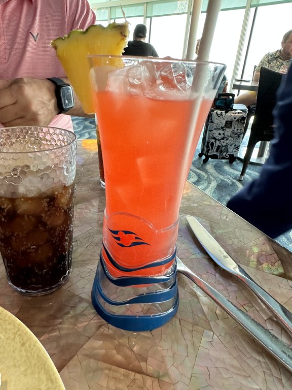 It sounds silly, but of all the years I've dreamed of going on a Disney Cruise, I couldn't wait to board and go straight to Cabanas. I've literally dreamed and waited for this moment for so long. So off we went to make my silly dreams come true. The hustle and bustle of Cabanas and the excitement everyone had to finally be on the ship was everything I thought it would be and more! Again, no pictures of the food, but it was actually really tasty. Especially the crab legs! I also tried lamb for the first time and it was much better than I expected also. We ordered the drink of the day from the waiter walking around and were able to keep the glasses as a souvenir.