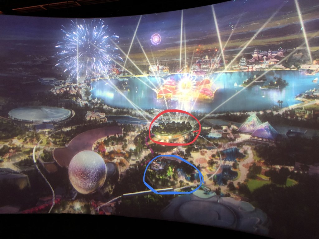 As @rudyjr13 said - Moana is going where the blue circle is in this concept art. The red circle appears to be an elevated park (the rumored beer garden / rooftop bar?)