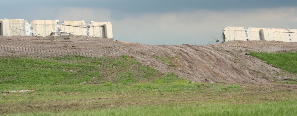 The race track barrier wall along the MK parking lot exit road.
