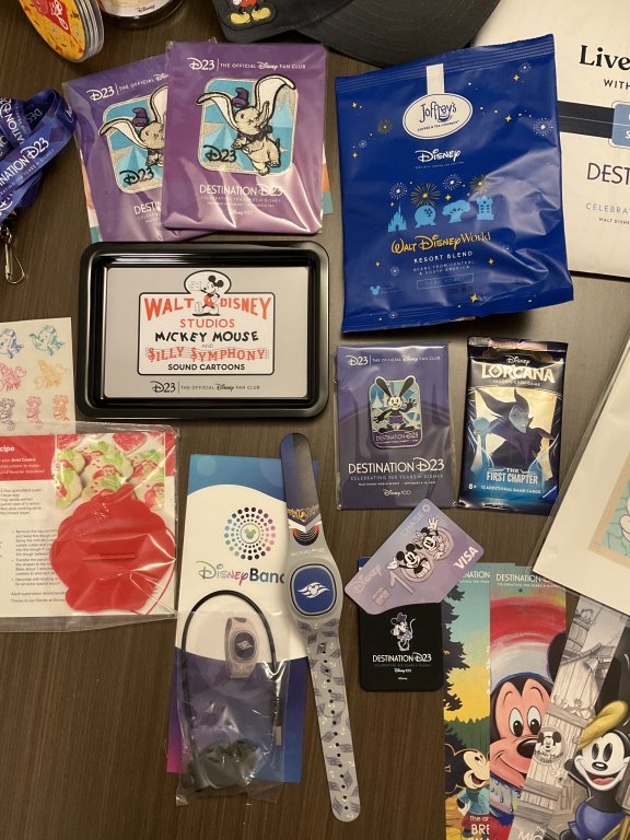 I attended a D23 Expo a few years ago, and the goodie bag for that event was pretty paltry compared to this sizable heap of nice swag.
