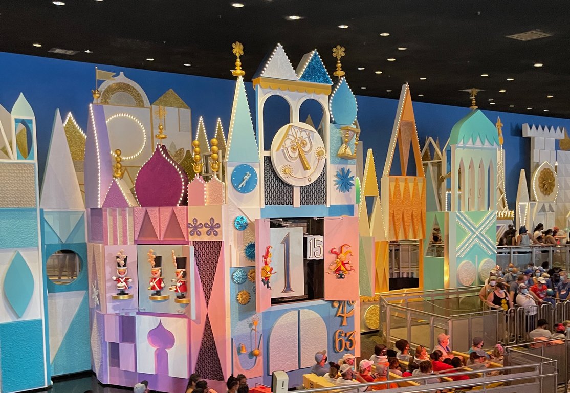 Our room still wasn't ready and lines were pretty short so we decided to hit It's A Small World First. I'll bet you can guess what time we arrived: