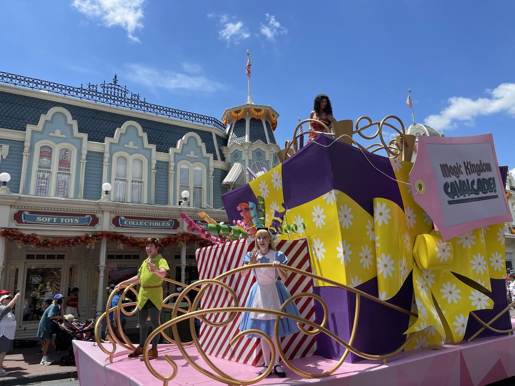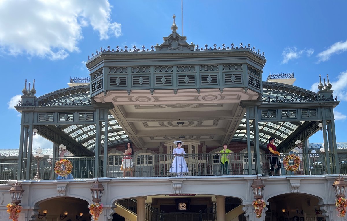 Yup, that's Alice (waving from inside the wreath), Moana, Mary Poppins, Peter Pan, and Gaston. Seems like an odd crew and perhaps a sign of limited staffing. I can hear the discussion behind closed doors right now. "It's a glorious meet and greet with all the princesses and their princes" "You got Alice, Moana, Mary, Peter, and Gaston and the train station balcony." *gasps incredulously* (I'm hoping you read that in the correct voices).