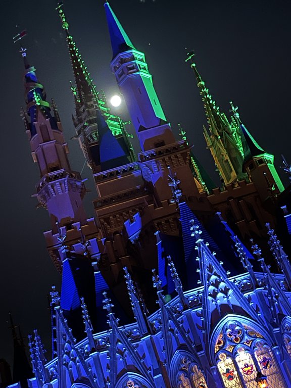 AWESOME picture of the moon in between the castle towers especially with it being Boo Bash !