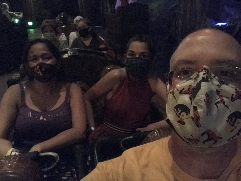 We got on the Magic Kingdom bus at about 7:55pm (little unreliable there, we were at the bus stop for over 30 minutes) which got us into Magic Kingdom at about 8:15pm. A few others have mentioned that that last hour of 'regular' park admission is pretty crowded because of the party-goers arriving and the day guests still there, but it still seemed somewhat empty to us. After checking in for the party, we headed right back to Big Thunder Mountain as one of the requests for this trip was watching some fireworks from that location. In line at about 8:25 and the wait was showing for 20 minutes so we knew we might be a little early. And... we were - the wait was only really about 15 minutes. Even after letting some people cut in front of us. We got off the ride and were walking back around as the first fireworks started to go off. So, we got back on - wait was now showing 10 minutes! And the wait was, well... maybe 3 minutes. I'm not sure if this is the surprise over the short wait or the total shock that I would do a roller coaster twice in a row.