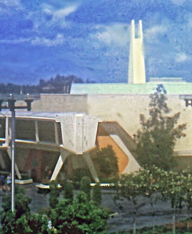 This picture reminds me just how good the recent CoP paintjob is. It reads like an aesthetical study of vintage TL. It distilled four of the constituting elements of vintage TL: the colour scheme, the Tomorrowland angle, the WedWay arch, and the hexagon. And then managed to make a modern design out of these. Pleasing to the eyes in its own right, and a hommage to and continuation of 1970's TL.And, the capped off central Wedway bridge to Flight to the Moon. The southern one was not capped, and the bridge out of Mickeys Mart (now Startraders) had a false wall flush with the building wall.