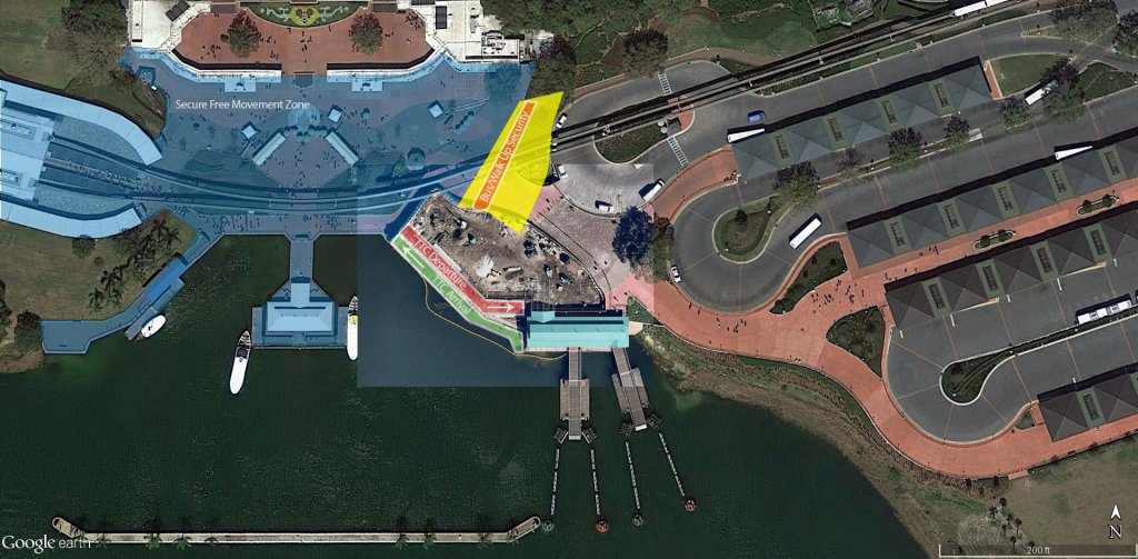 My guess is all boats and monorail guests will be screened before boarding at the hotels/TTC as previously discussed.
