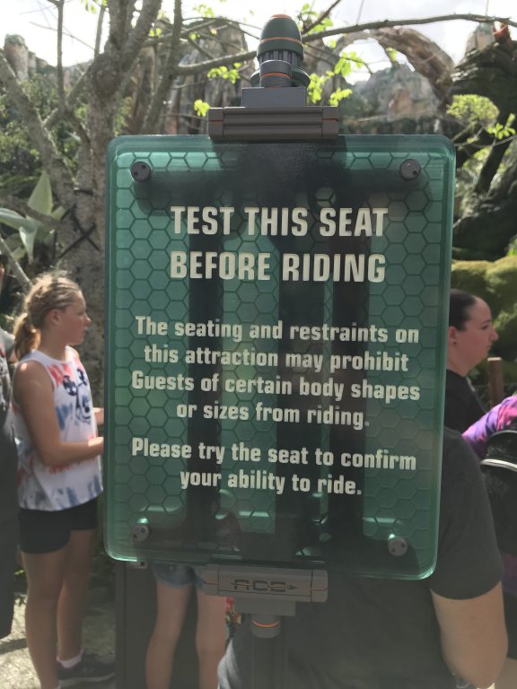 That's what I've been saying since they installed the test seat. The seat needs to be in a less conspicuous location, not right in front of the entrance of the ride for all to see. People of "certain body shapes or sizes" are often sensitive about their size as it is.Its in a horrible place. Right at the entrance and all the kids play on it. And everyone stares when testing.