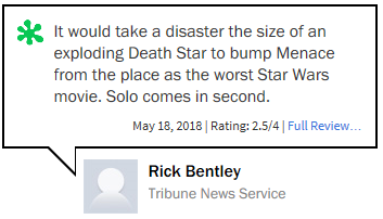 A good enjoyable film from start to finish. Also, a very consistent one- I would not have picked up on any production issues or directorial changes had I not known about them ahead of time. The film is often humorous, but is in no ways a flat out comedy as I think some may have come to expect. This feels very much like a Star Wars film (though one with little myth/fantasy.)