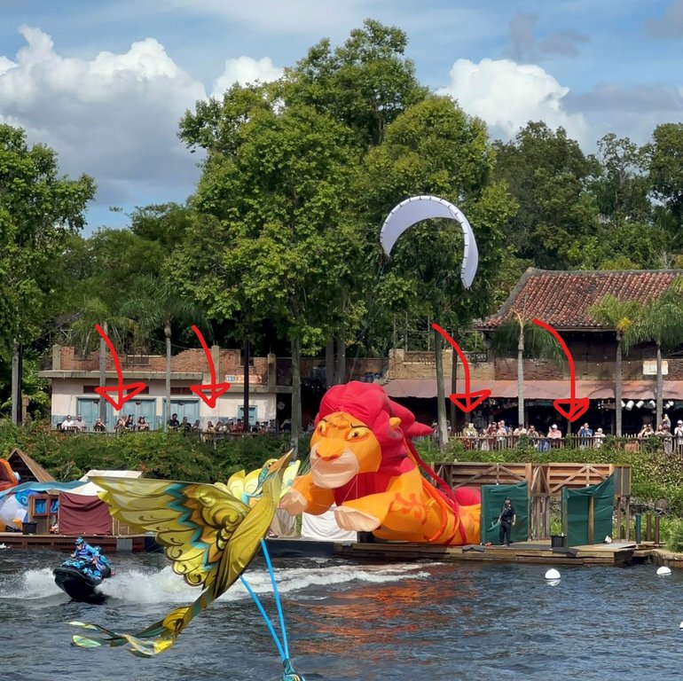 They store and launch the balloons from a hastily made dock right off the main walkway to Everest, with deflated balloons from the last show laid out to dry in the sun. The dock launch facility looks like they built this thing for about 800 bucks and three trips to Home Depot.