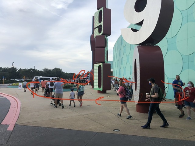 For Epcot, I took a Lyft to the Boardwalk area and walked to the Intl Gateway. They had a socially distanced line set up in the Friendship boat launch area. At 10:30, they started scanning temps and letting people tap into the park. It seemed they let us go earlier than the main entrance, because I was able to get to Test Track before anybody from the front entrance arrived (even though the walk from IG is longer). TT let people through the queue, but held everybody starting at the FP merge until official park opening.