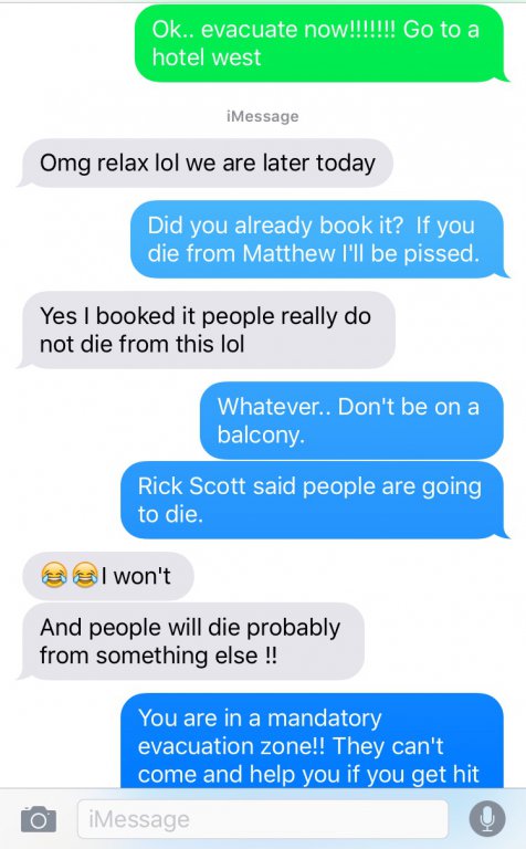 Anyway, 1 lives on a barrier island, in a mandatory evac zone, and still has not left. Several have gone to hotels.. And 1 lives east of 95 but west of US 1 so not mandatory evac.