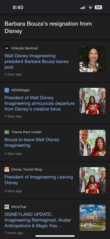 I feel like we need some context. So the company she previously worked for, which at first should be a red flag but anyway, she is probably the main reason with the detheming of the Disney resorts such as the boardwalk. With Bruce in charge I am optimistic, he has been with Disney of 25 years and has headed a lot of very promising projects at the parks in particular Disney World. Also I remain cautiously optimistic about the country bears reimagining, some of the old songs weren’t really the best (cough, cough, blood on the ground, cough, cough).She's only been there since mid-2020 and upper management hasn't actually greenest anything since then that we know of. So, it's tough to say if this is good or bad news. The only project that is for sure happening that would've happened under her is the Country Bears update which is getting great buzz from insiders. Plus, she mightve been the one to up the budget for Tiana to make sure it lived up to Splash's legacy (which by all accounts it seems to be just as good if not WAY better from what they've shown though it's tough to fully judge till it's done).