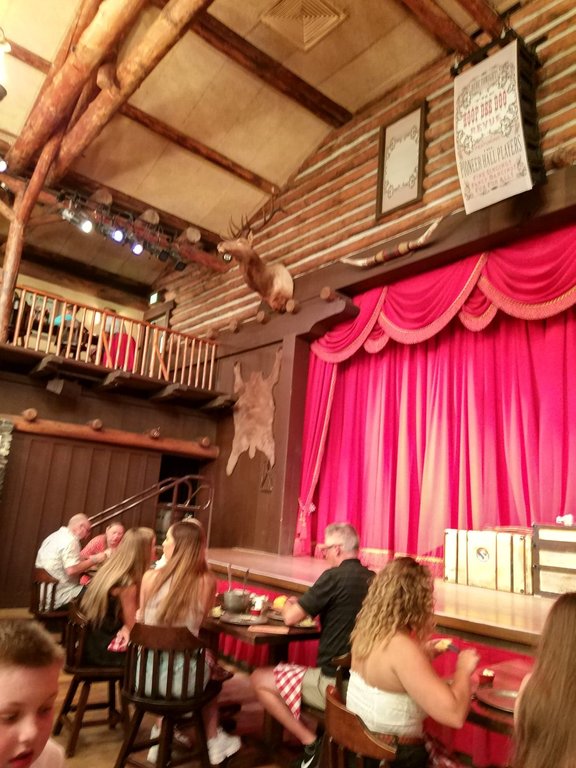 I will spare you most of the truly awful pictures, but I do want you to see the joy on A's face. He was having a BLAST. The jokes were so corny, and I was a bit disappointed that when they were doing the song about people coming from all over, and the singer came to our table and asked where we were from, and we said the Netherlands, he talked to us for just a minute and then moved on and introduced a table from Canada instead. But I get why the joke wouldn't have worked with the Netherlands. I guess they don't really expect a bunch of foreigners for this show?