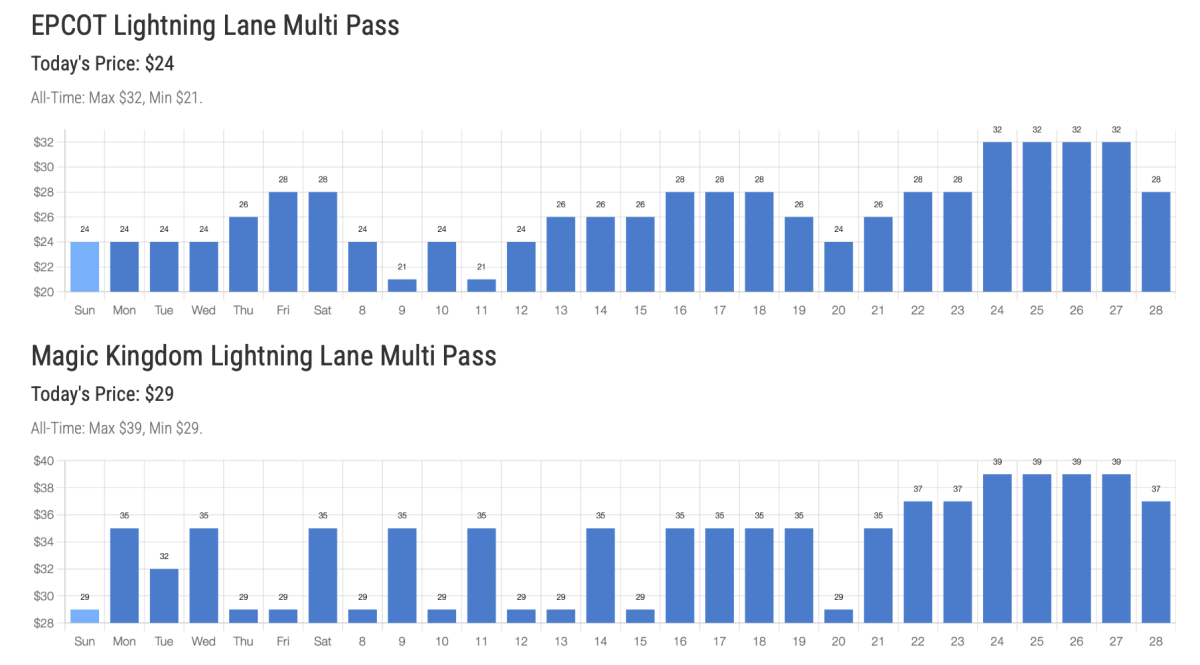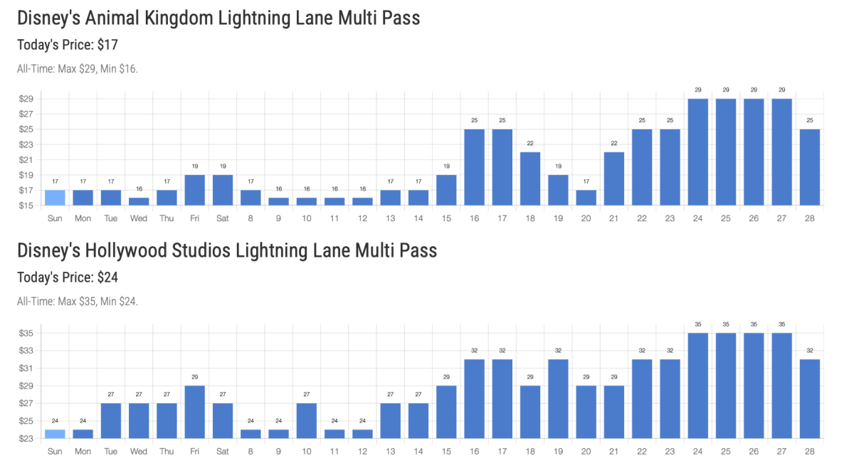Here's a look at upcoming pricing - find the full list at https://www.wdwmagic.com/genieprice.htm: