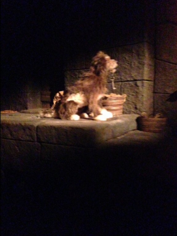 Yup, a well groomed mutt in a scene of pirates would certainly display an air of reality to the whole scene. Also, a lot of those pirates look like they could use a shower.What were they thinking? And that pirate with his hairy leg hanging down from the bridge,