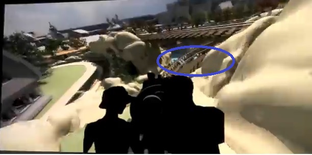 Well, even if my hypothetical placement is correct, the concept art is backwards. I can't think of anywhere where the cars are making a right turn with the waterfall possibly on the left except at the main bridge. But, that main bridge is to span the track, not the waterfall. So, like I said, this concept art simply can't be completely correct. The question, though, is whether it is conceptually correct.