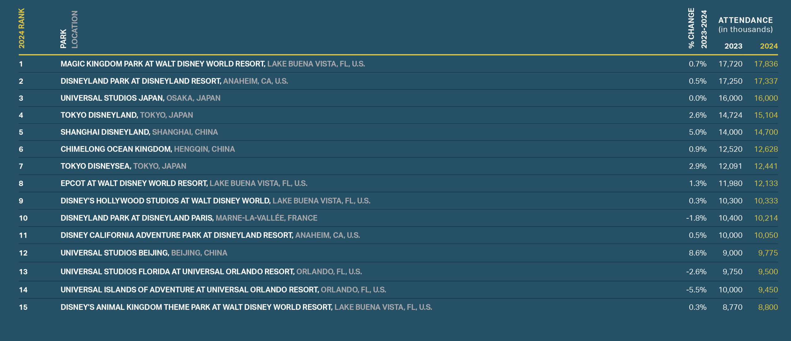 USJ beats out both, remaining 3rd-most visited park in the world and most-vistied in Asia, despite remaining flat from last year.