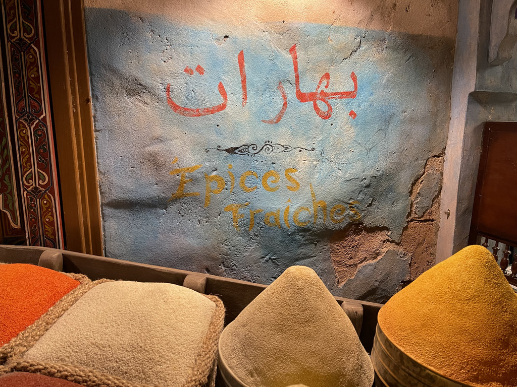 So, this isn't much of an improvement. First, the word on the wall is now بهارات, which means "spices" in Modern Standard Arabic but isn't what they use in Morocco, where عطریة is the preferred term: