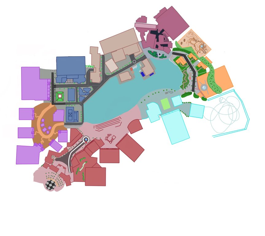 This miniland can be exited back through the house, or through a tunnel through the hillside (not on the map) disguising the fully enclosed (but roofless) area from the rest of the land and park.