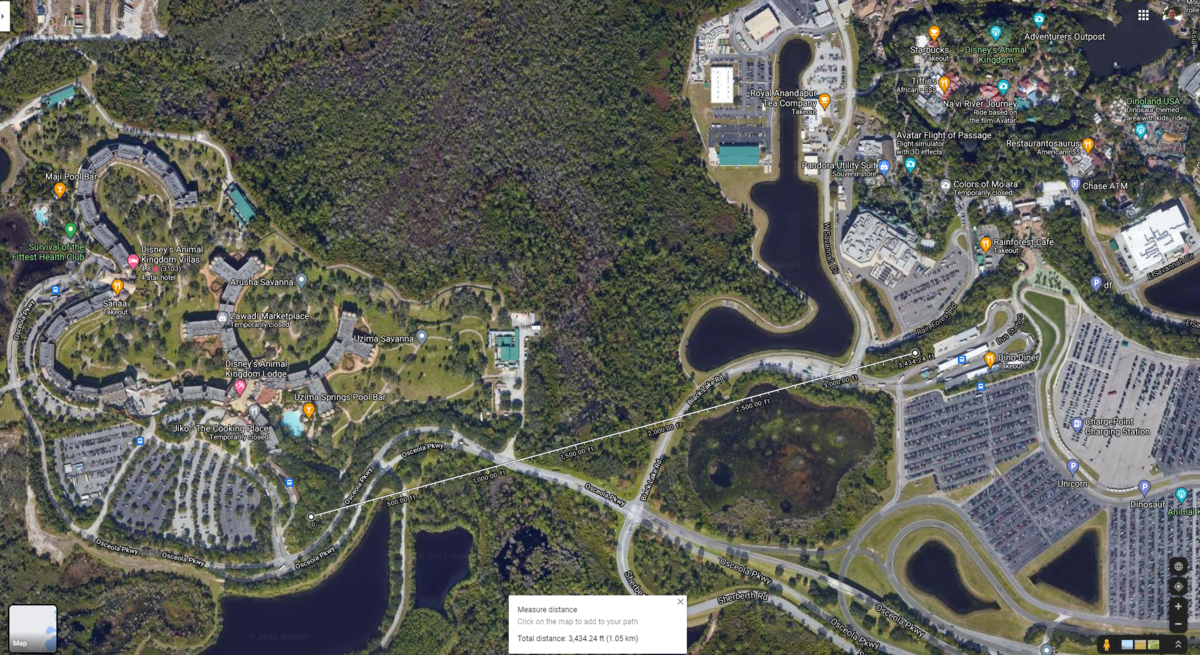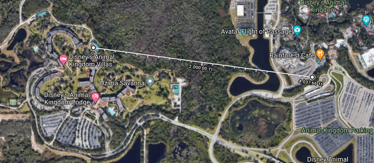 Of course, most of that route could be done with only a buss lane crossing at grade level too. They could put in anything and make the same happen. Same for any route from the back of the resort, there's no crossing to deal with. A gondola should still be cheaper, but it needs to be a straight line. Something else could curve. My wife always wants to stay at AK, but having to take a bus everywhere, even to AK is a disappointment. I assume they'll do something "eventually".