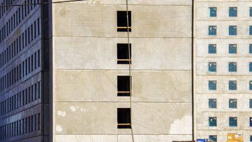 Aerial view of paint in progress at second tower of Universal's Dockside Inn. Note the end cap.