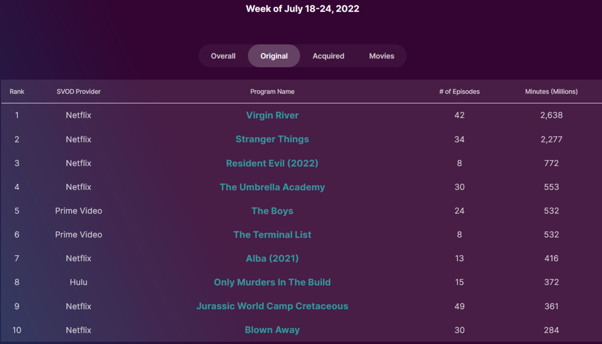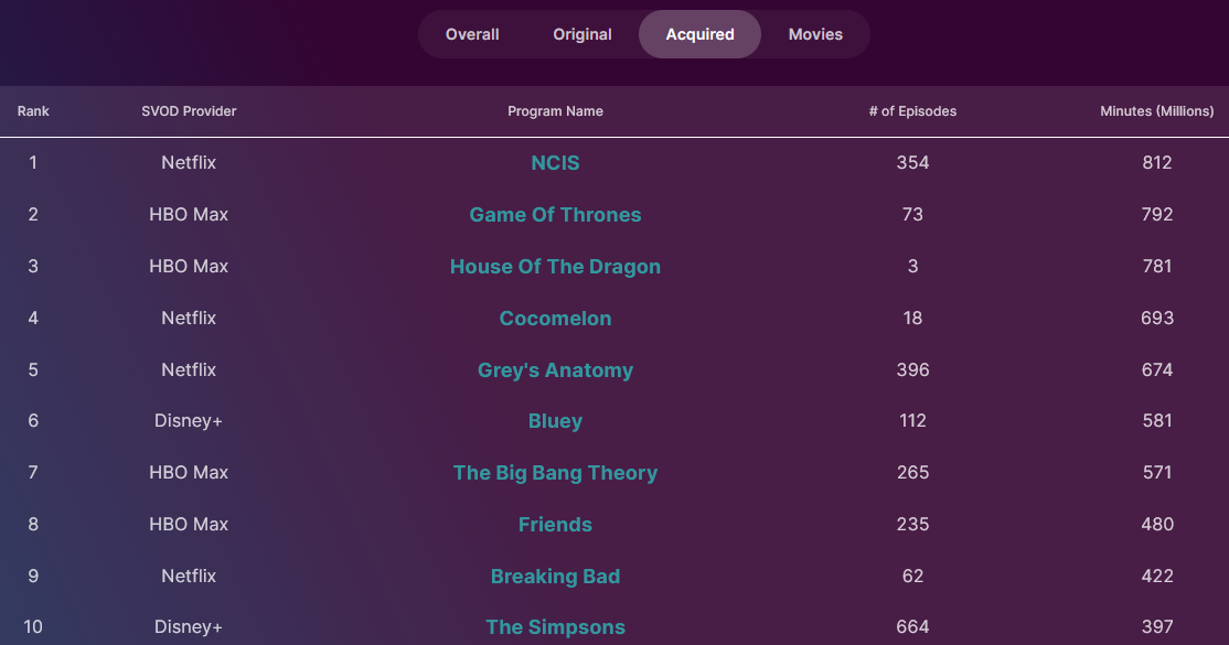 Due to in-house content. Just like parks…a distinct advantage. I do think they’ll have to produce a lot more shows and hours to Maintain momentum.
