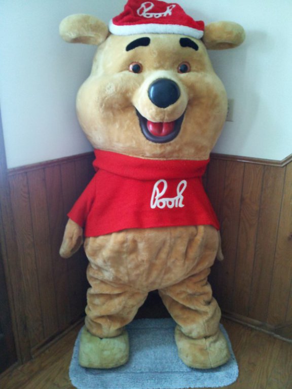 So, I was looking at a photo of the old Pooh costume, and wondered: How did the performer move both Pooh's face and arms?