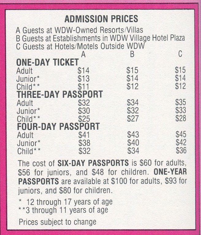 Man, don't take it personally. I didn't say they were completely out of line, all I did was show what it was then. Really in 1983. at least in the beginning, EPCOT Ctr. was hardly a full park. There was very little there to do and long, long lines to do them.**Attractions and activities at WDW subject to increase.