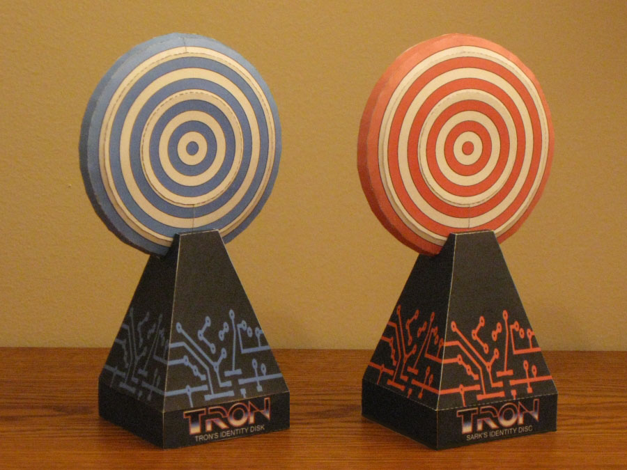 Guests will pivot these devices on a central mount in order to aim, and push the button to fire. Upon firing, a fanned laser appears, making it look as if you have just shot an identity disc and are seeing its trail. These laser fans will shoot at targets both found in the grid, but also on the opposing teams car. These targets look like identity discs on a black base.