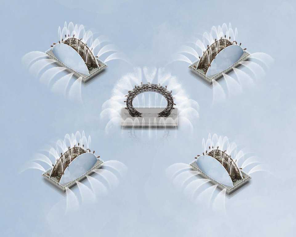 Looking at the barges more closely, the screens look curved, bulging at the bottom. That's an interesting artist's interpretation. Also funny how they made the screens the same color as the water so they blend in more.