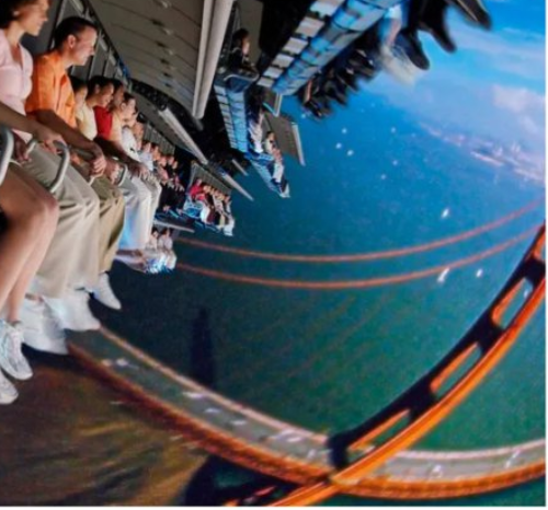 The Golden Gate Bridge called...I might have preferred sewing around the world had it not been for its bad CGI and the fact that if you don't want it from front center you get a very slanted view from sections / gates A and C. Most especially the Eiffel Tower looks horrendously bad to the point of ruining all illusions of flight.