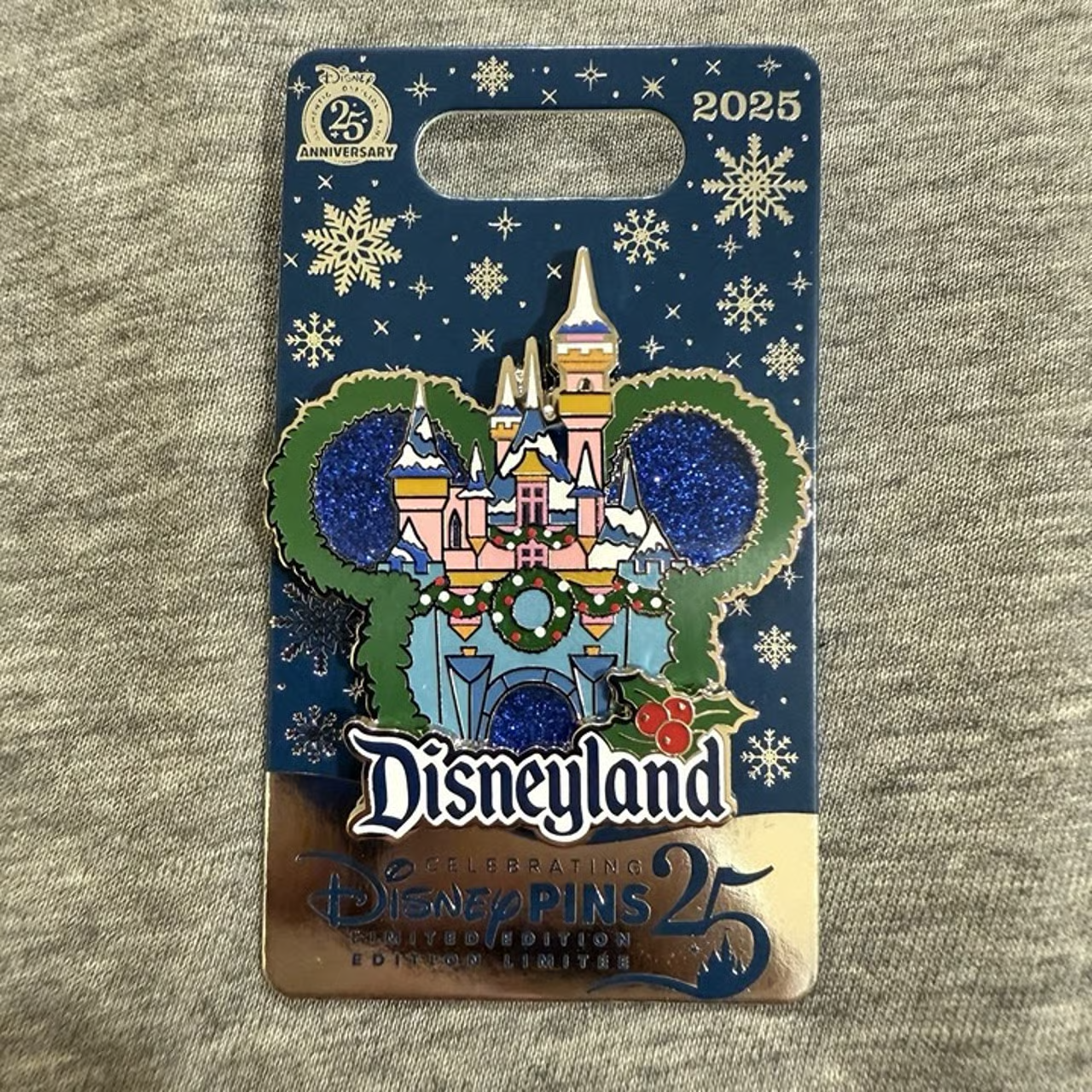 They must've run out of some of the designs! Off the top of my head I know of at least 2 pins from their Christmas line this year that included DLR on it (my favorite is the Mickey wreath one, shame it was only LE 2000):My mother was hoping for Christmas pins, and there was really just a Christmas Day pin available, or one from Small World Holiday featuring a character she's not crazy about (the only other option weirdly had a festive-looking Mickey on a bunch of similar pins with country names on them that made us wonder if they were surplus Epcot pins that accidentally got shipped west). A bit disappointing for her. I will never understand why they have rows and rows of character pins but have so few pins that actually say Disneyland on them or Disneyland Christmas. They can swap out shirts for Christmas but can't do the same for a few more pins?