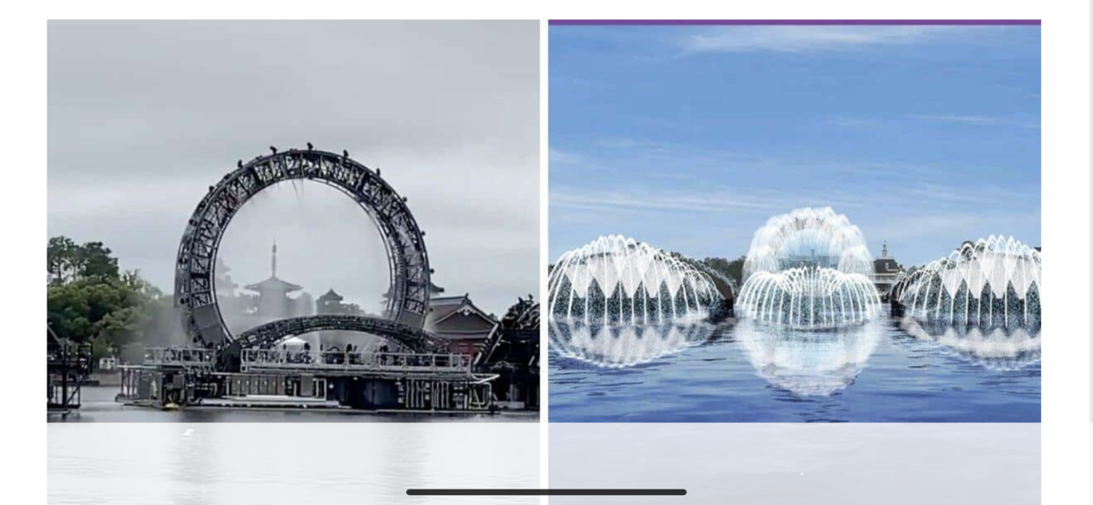 The original concept was to hide the tacos and stargate structure with fountains - and when they tested the fountains it was nothing stronger than a mist with these giant behemoth black eyesores not being hidden at all. They were continuing the test the daytime fountains as recently as 2 months ago. God I hope the 4 black tacos and stargate are removed in short order and bring back the beauty of world showcase.