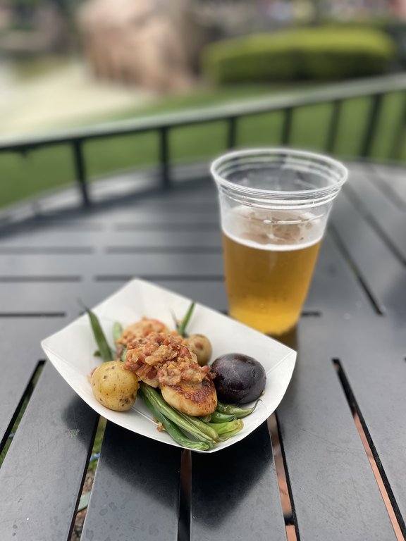 Funny story: a little later I was chatting with a CM who was cleaning tables. I asked him his favorite thing to eat at the outdoor kitchens. He said the lavender chicken flatbread and scallops, the two dishes I had. I stopped eating. If that was as good as it gets for food, I decided I would drink instead. Enter 9000 to help with that.