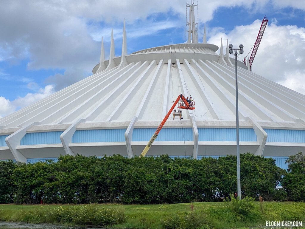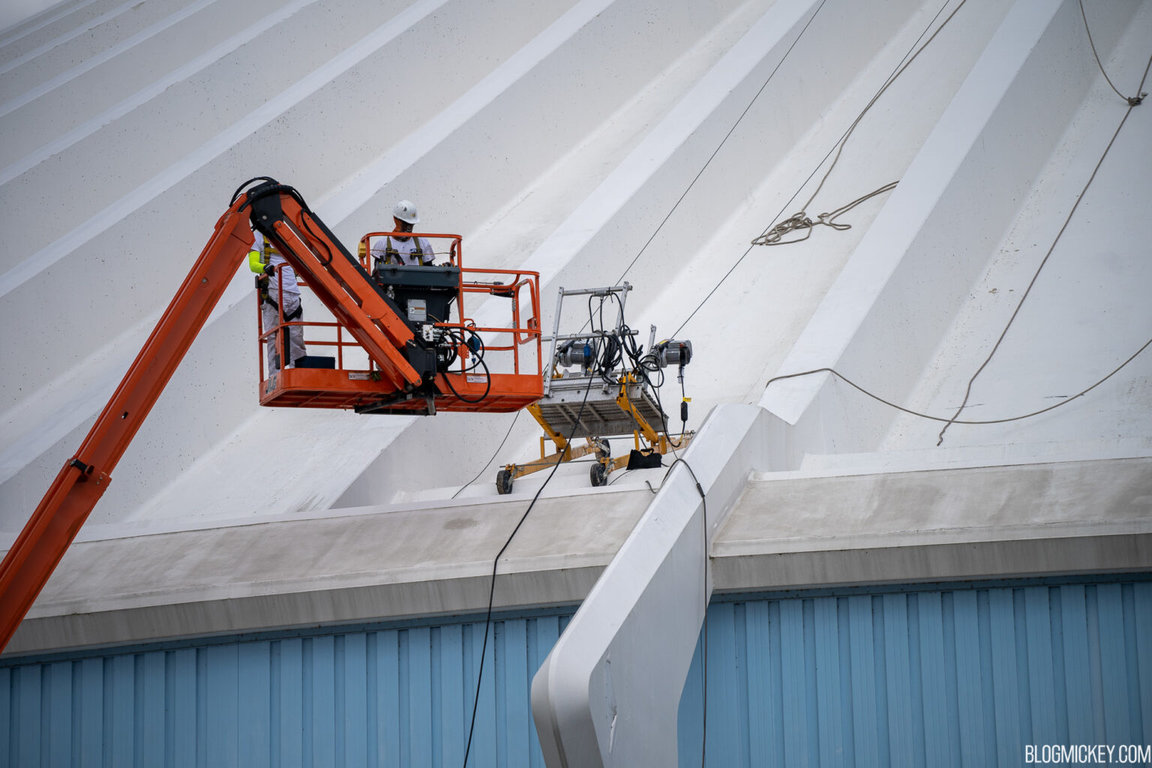 Work being done on Space Mountain exterior...hopefully they’re either cleaning/pressure washing or repainting! Giving the building some much need love.