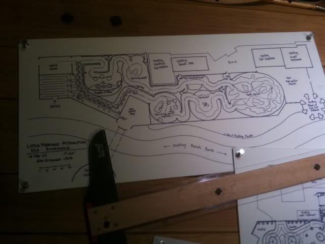 Apparently, this incarnation was also considered for California Adventure as well, as evident by this layout showing how it would fit in the Golden Dreams space: