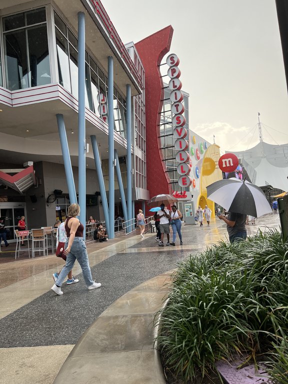 we’ve taken refuge under a stage at Disney springs. At least it’s cooled off a bit.