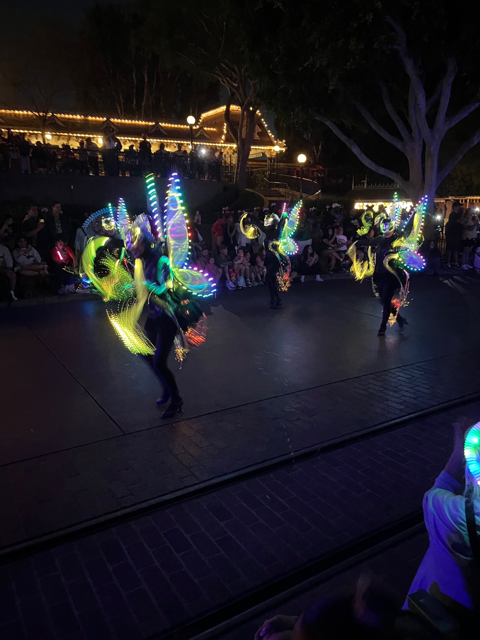 I forgot to mention that Fantasmic! started at 9 pm, the same time as Paint The Night. Em and I decided the reason is for crowd control purposes. With fireworks at 9:35 pm, guests can see them while remaining in their F! location or remaining in their PTN location. It is then possible to watch all three shows in the same night by doing F! > fireworks > 11 pm PTN.