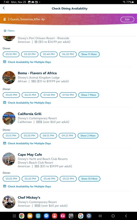 Who want to eat dinner at 5:30 or 9:00?This is how bad California Grill has become...this is for tomorrow.