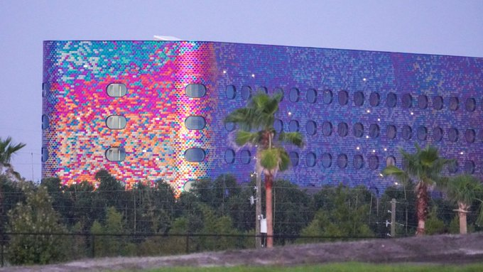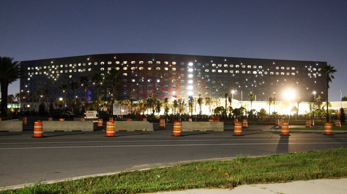 Almost all windows are installed on the new Universal Creative office in the Northwest corner of the Epic Universe development site.