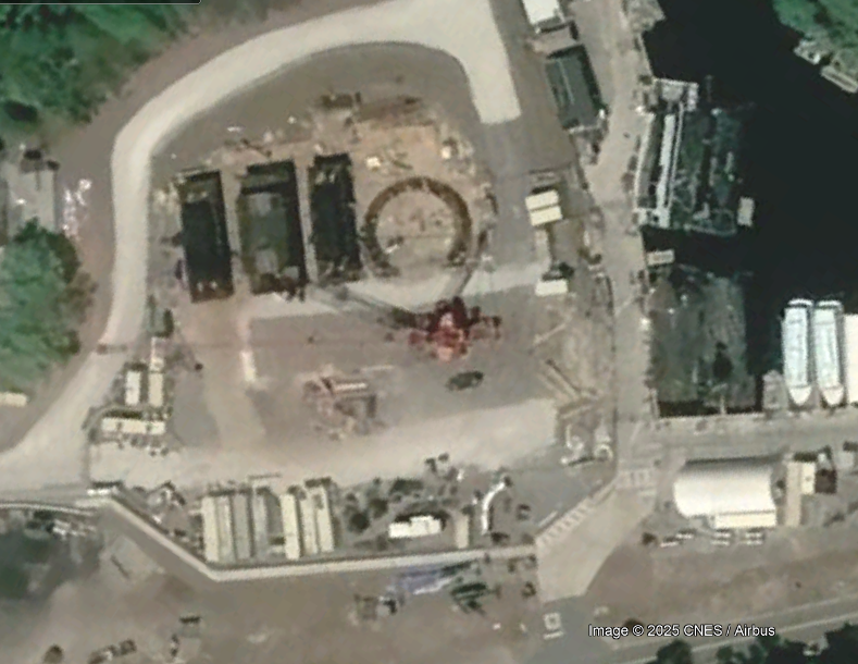 Thank God those monstrosities are no longer with us.It was a staging area for the construction of and later scraping of the Harmonious barges. Here is a picture from when they were working on the barges.