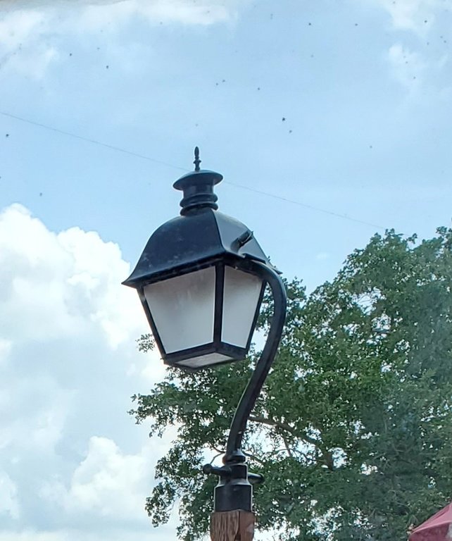Even closer.It's clearly one of the many lampposts in Liberty Square, but which one? Based on the little corner of red awning, I'm going to guess near the seating area for Liberty Square Market.